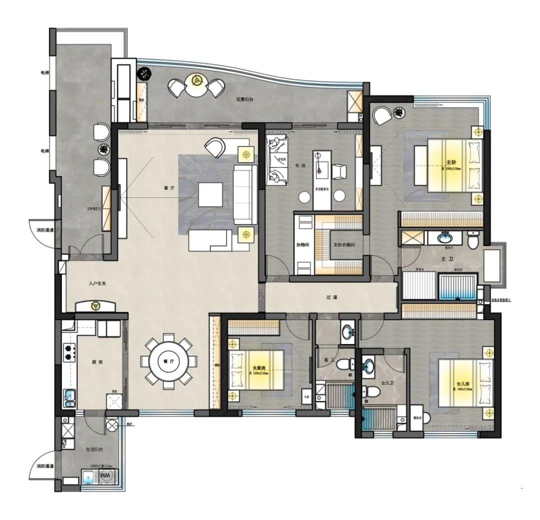 廚房操作臺做L型設計,動線流暢,寬敞便捷。生活陽臺與之連通,相對擴寬廚房的適用范圍。家電配備齊全,烘焙、烤制都不在話下。