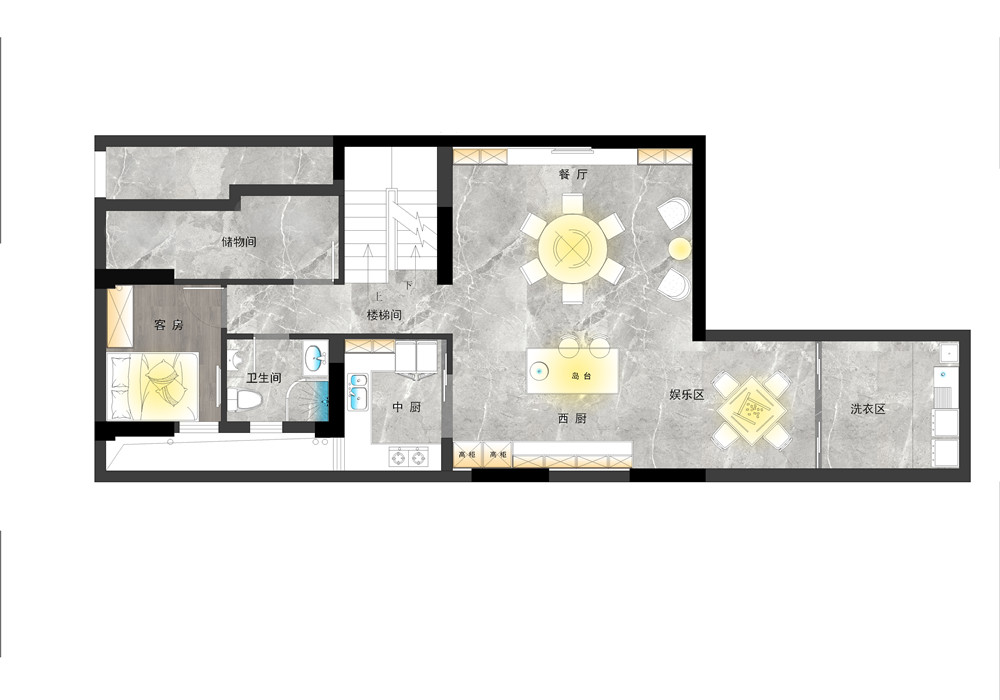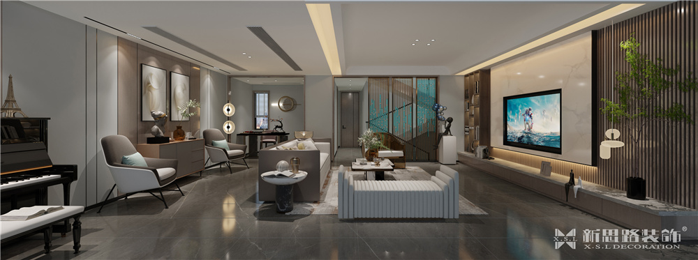 樓盤小區:協信星麓原 面積:底躍330平方 風格:現代輕奢 設計說明 此設計為星麓原洋房底躍,面積330平方,常駐5口人家,負一樓層高為5860毫米,可以做現澆設計成兩層,負二樓設計