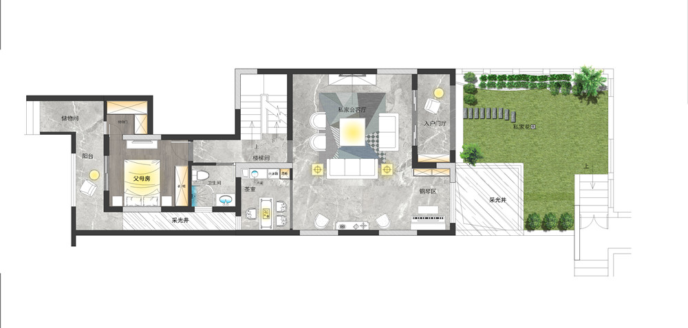 此設計為星麓原洋房底躍,面積330平方,常駐5口人家,負一樓層高為5860毫米,可以做現澆設計成兩層,負二樓設計為影視廳,健身區,把廚房改造負一樓,使空間合理利用,有一個客房考慮在負一樓,不常住,吃飯娛樂,一樓設計為會客廳,茶區,父母房,父母年齡大了,盡量少走樓梯,二樓就是主臥,女兒房,還有次臥。