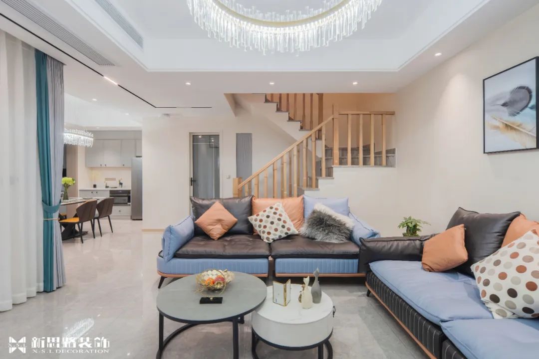 整個空間以溫潤的顏色為基底,輔以材質(zhì)與顏色的碰撞,光線與空間互動,營造出簡約優(yōu)雅現(xiàn)代格調(diào),空間是光影的容器,進入客廳區(qū)域后迎向大面的南向采光,光線透過窗緩緩進入室內(nèi),在柔光輕撫下迎接日常的序幕。挑高的空間立體層次,使行走其中的動線更加自由靈活。