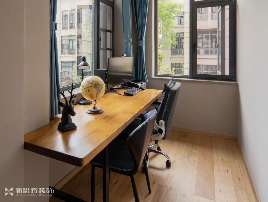 沉穩(wěn)的書房在主臥旁側(cè),深木色獨有的古韻沉浸在悠然自在之中,書房即可辦公也可以在沙發(fā)會客談心,靈動開放的布局與格調(diào)生活理念相融合,在注重秩序與功能的同時、平和、穩(wěn)重的氣韻。