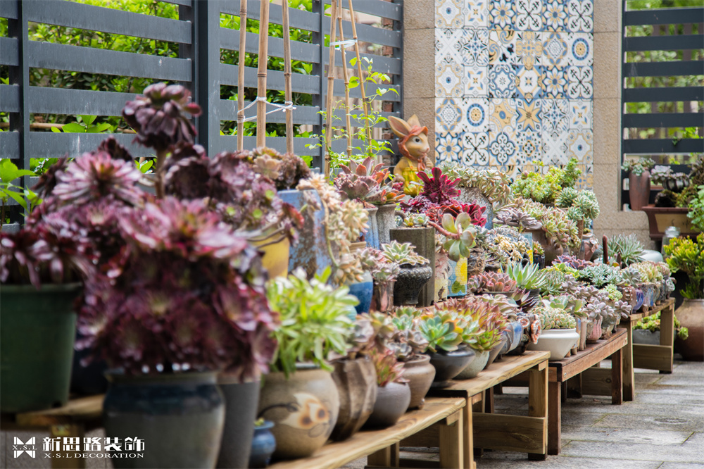 生活中任何一個看似平凡的生活,只要你愿意澆灌理想與情懷,終會變?yōu)?ldquo;詩和遠方的田野”屋主十分喜愛自然。家里擁有貓咪和多肉植物,便在入戶花園的兩側(cè)設置了植物架,放置喜愛的植物,花園一抹艷麗的粉紅,在任何一個角落,都能體會到一家人悠然自得的生活態(tài)度和陽光般明媚的心情感受。