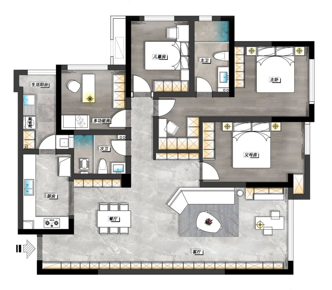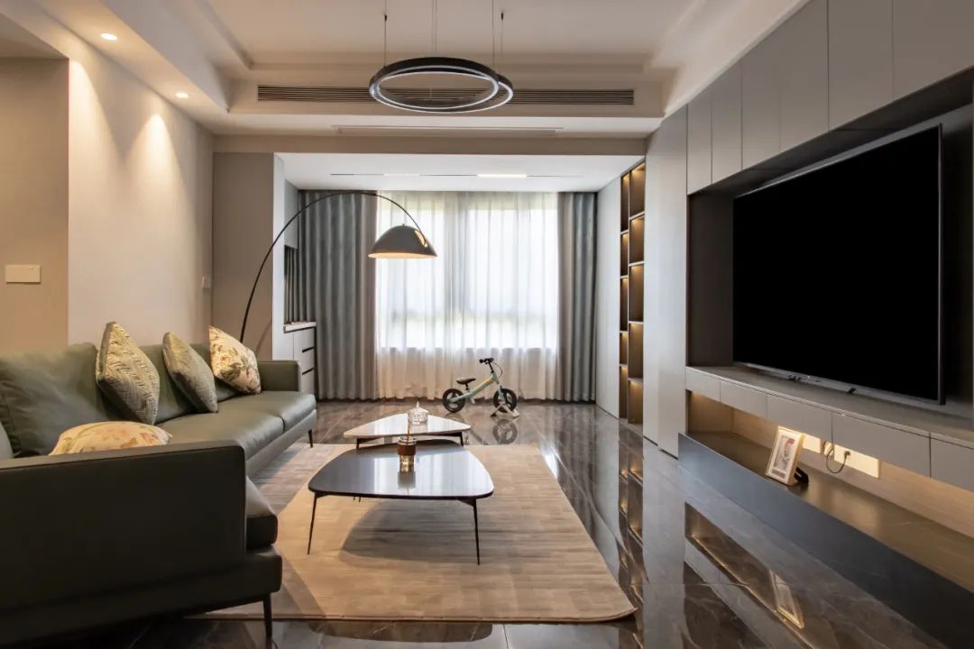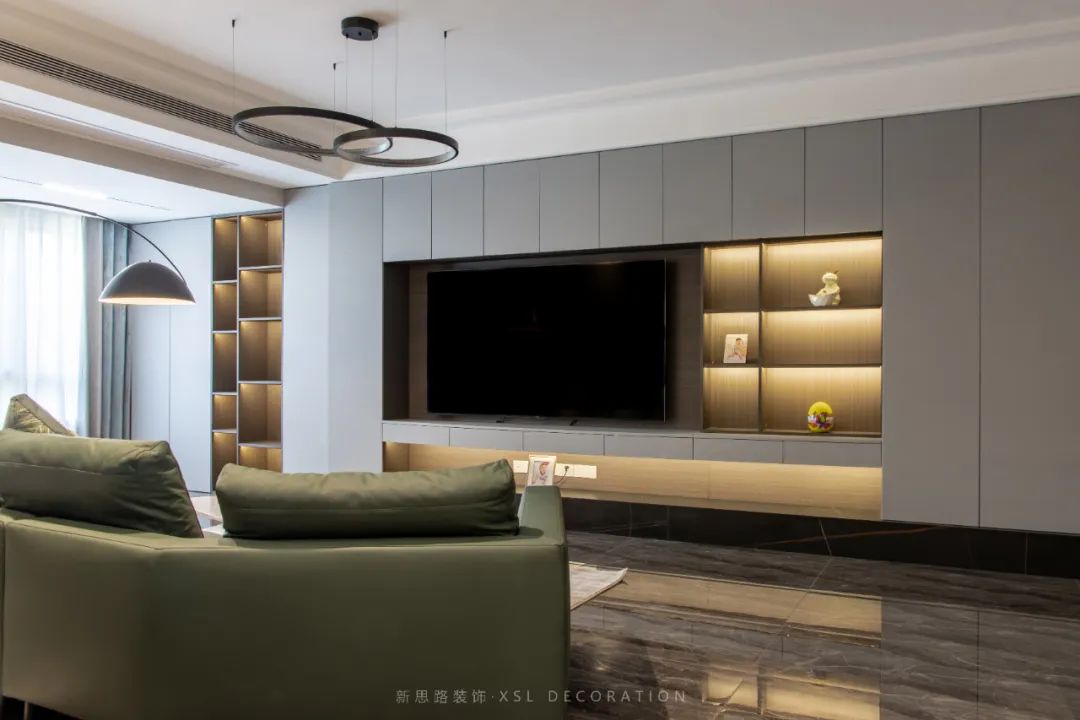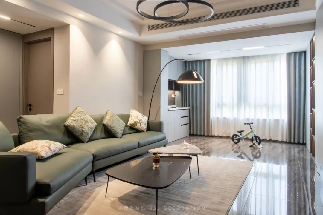 將陽臺納入客廳空間,通過設(shè)計的“減法“讓居者褪去了視覺的負(fù)擔(dān),感受輕盈自若,大面積純色過渡了炎夏的陽光,只留下溫和舒宜的渲染力,同頂部的留白,產(chǎn)生共鳴,依架構(gòu)形態(tài)劃分平行動線,于暢通無阻的氣韻中,點(diǎn)綴質(zhì)感的高雅氣質(zhì),書寫配色的經(jīng)典奧義,打底的灰色基調(diào),領(lǐng)銜啞光與亮光,將空間秩序重新梳理,得到了自由而寬敞的客廳。寬大的異形沙發(fā)可更好的包容地接納疲憊的身軀。