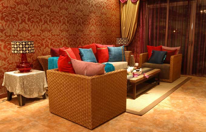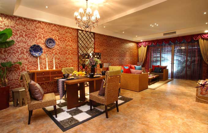 經典濃重的色彩,碩大的花紋圖案,適當比例的運用,自然風格家私飾品的點綴,引領出高貴、新穎、豪華的東南亞風格。