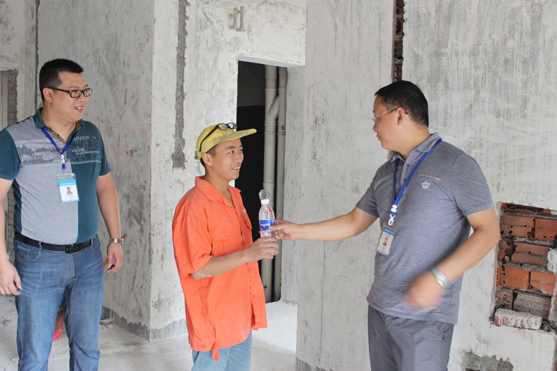 在送水過程中,我們也幾次巧遇正在工地的業(yè)主。得知新思路領(lǐng)導(dǎo)親自到工地送水之后,業(yè)主們紛紛對(duì)此表示贊揚(yáng)和肯定。他們稱贊說:“新思路企業(yè)很有人性化了,非常不錯(cuò)!”“領(lǐng)導(dǎo)們?cè)诖鬅崽旖o工人送水,說明了新思路裝飾公司確實(shí)與其他裝飾公司不同,我相信你們也一定會(huì)把我的工地做好!”……業(yè)主們的贊揚(yáng)既是對(duì)我們工作的肯定,也是推動(dòng)公司邁上更高臺(tái)階的強(qiáng)大動(dòng)力,感謝每一位業(yè)主!