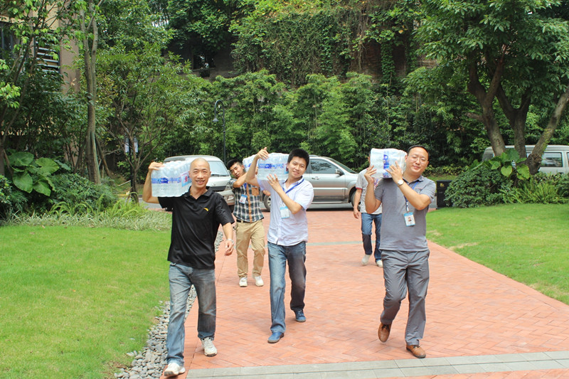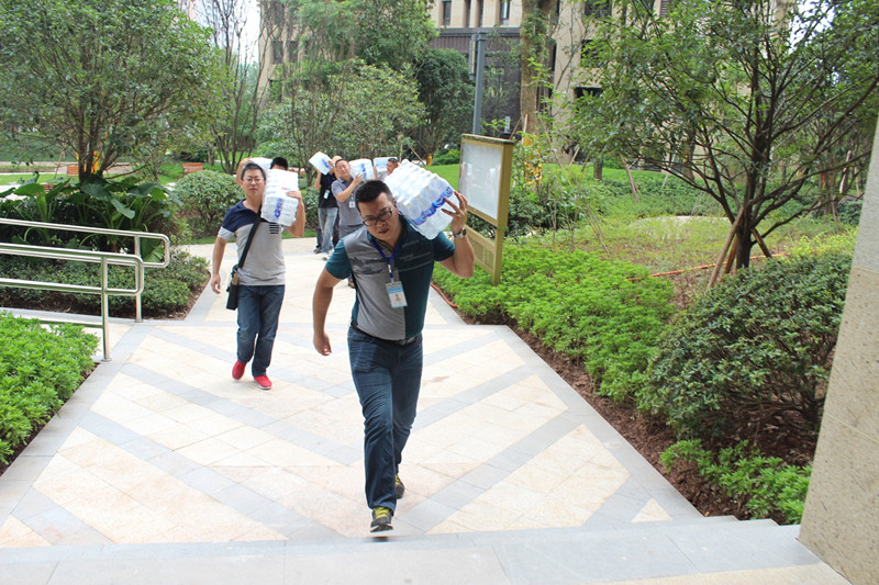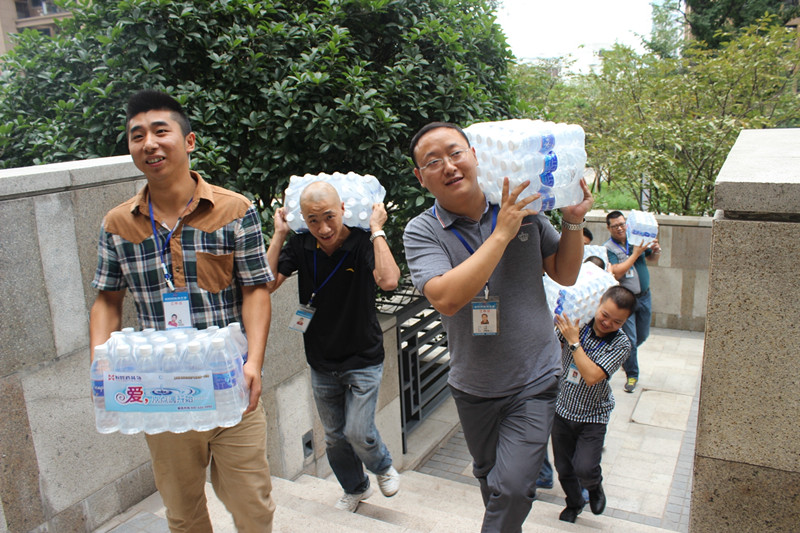 臺(tái)階再高,天氣再熱,但所有人的腳步依舊堅(jiān)定,心懷員工,都想快速地把水送到一線員工手中以解干渴。