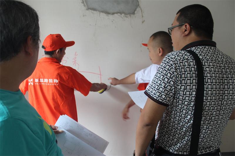 工程質檢正在向業(yè)主介紹公司施工管理和服務的標準。新思路裝飾一直堅持“客戶滿意是唯一的工作標準”,努力踐行“裝修做客戶口碑”的理念,致力為每一位客戶提供高品質的工程質量和裝修服務。