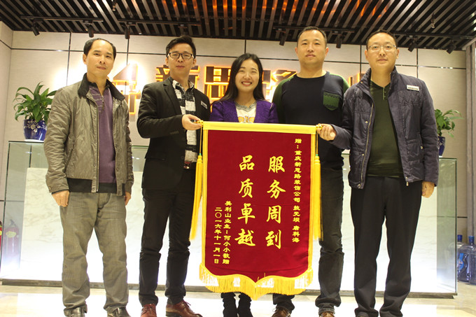 11月12日上午,美利山業主何老師及家人親臨南坪總部新思路裝飾為設計師敖元壩,工長唐科海送上一面印有:“服務周到,品質卓越”的錦旗。這是對新思路裝飾品質的認可,這也正是我們所秉承:客戶滿意是我們唯一的工作標準”的裝修理念。