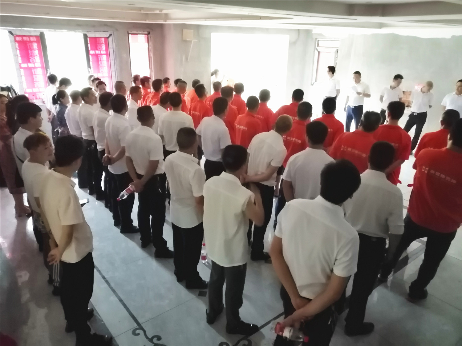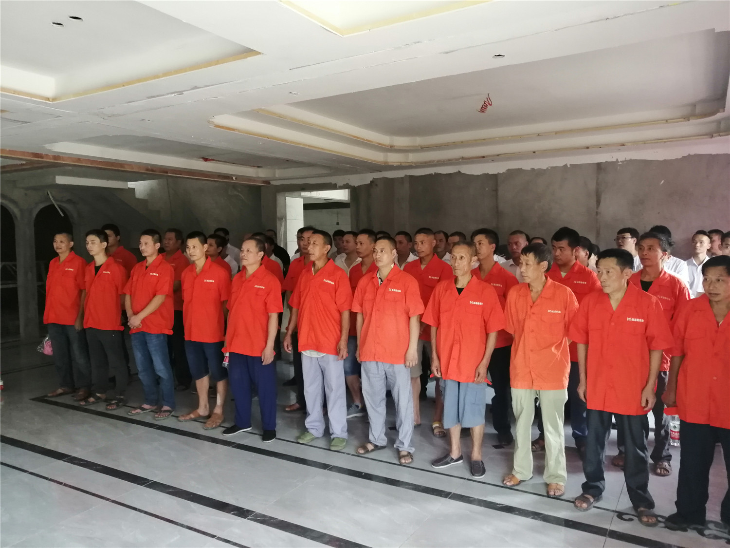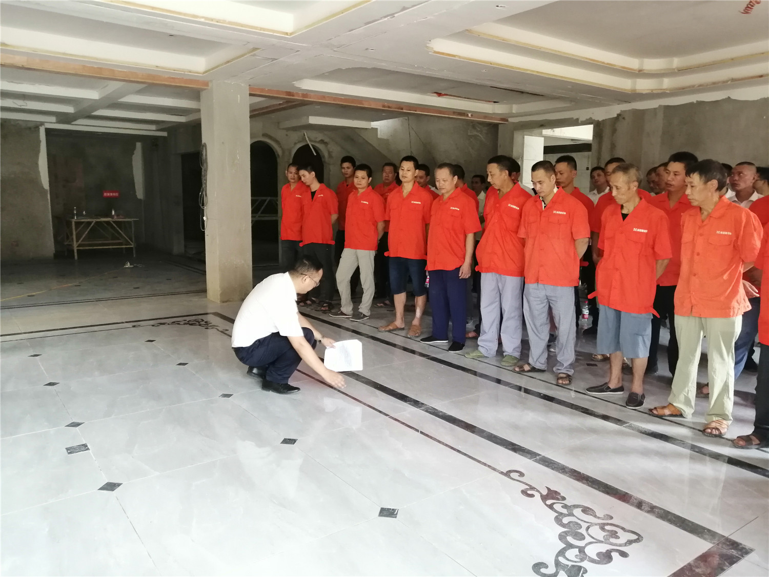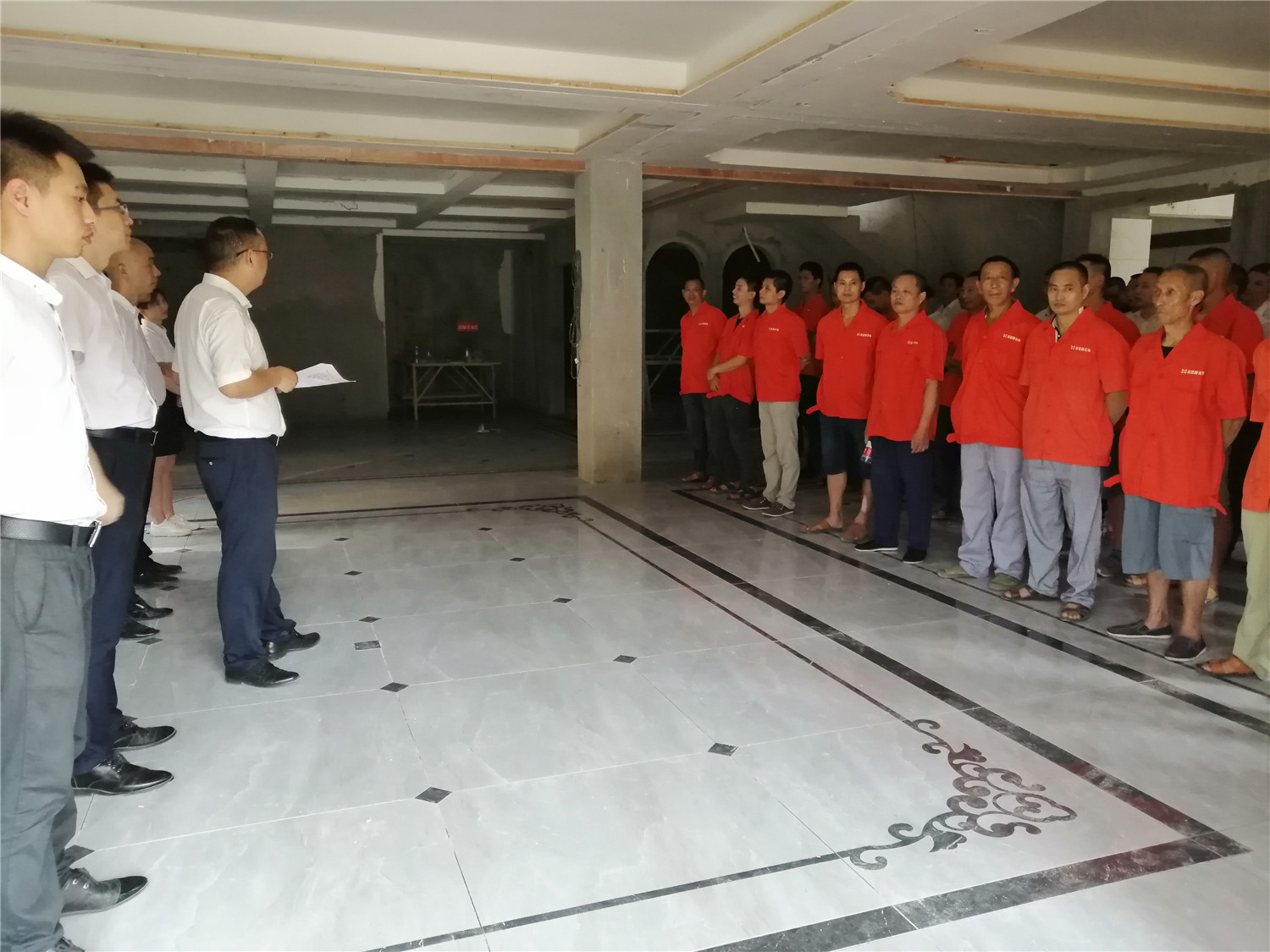 給工人和項目經理整隊,展現良好精神面貌