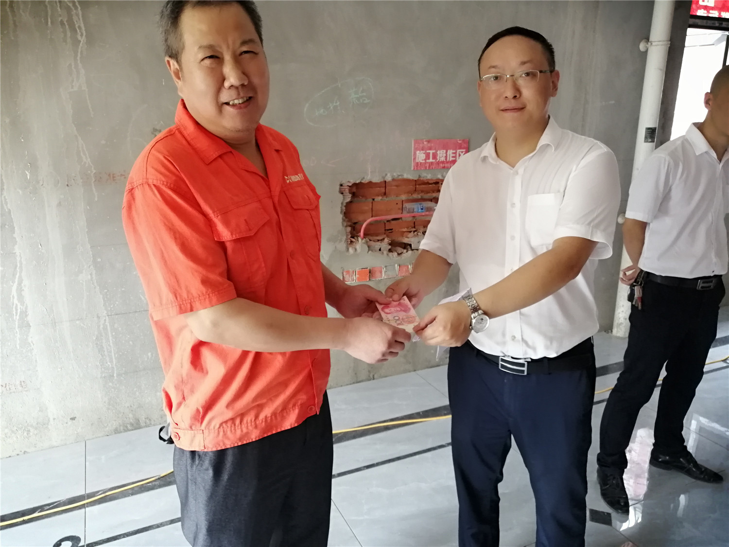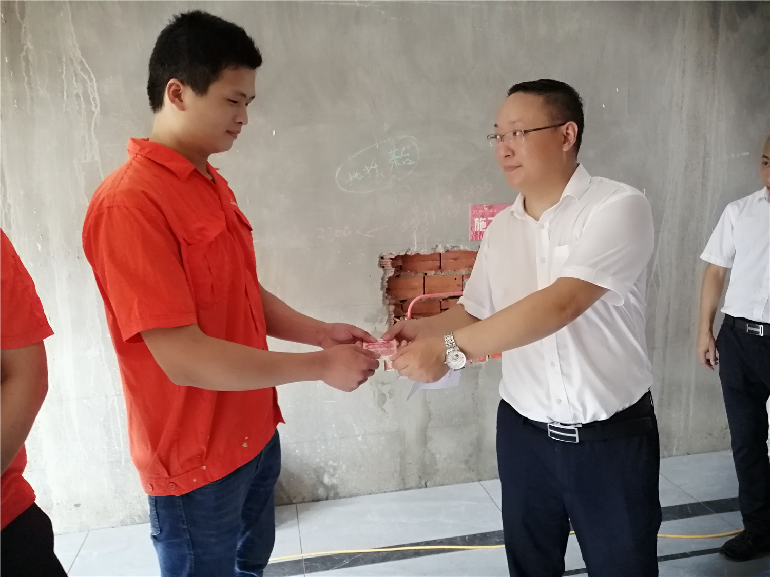 文經理給問題回答正確的工人現場發放現金獎勵