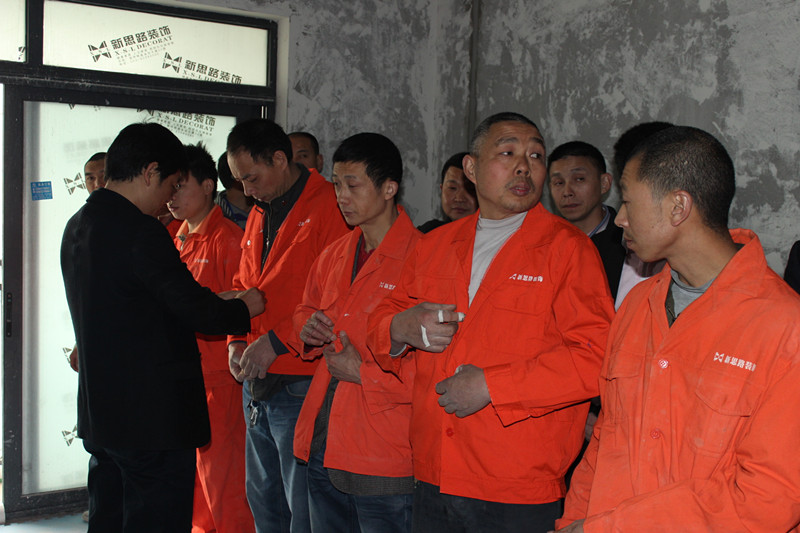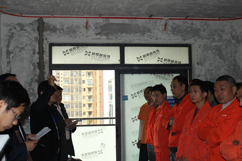 此次培訓(xùn)由具有二十多年施工經(jīng)驗(yàn)的張總親自主持。首先,張總以提問(wèn)的形式宣講了公司的基本信息和企業(yè)文化,同工人們進(jìn)行了熱烈互動(dòng),對(duì)于回答正確的工人,當(dāng)場(chǎng)給予現(xiàn)金獎(jiǎng)勵(lì)。張總強(qiáng)調(diào),作為新思路裝飾的一員,牢記公司的一些基本信息不僅能加強(qiáng)對(duì)公司的了解,同時(shí)也是展現(xiàn)新思路員工職業(yè)素養(yǎng)和形象的新窗口。隨后張總又從泥水施工新工藝技術(shù)、工序流程、規(guī)范標(biāo)準(zhǔn)、注意事項(xiàng)等方面對(duì)工人們進(jìn)行了專業(yè)培訓(xùn)。在培訓(xùn)過(guò)程中,張總以現(xiàn)場(chǎng)在施工工地為實(shí)例,通過(guò)一些鮮活的事例,比如一根線,兩顆釘子,怎樣找水平;平整度、垂直度如何檢測(cè);磚與磚接縫高低差標(biāo)準(zhǔn);陰陽(yáng)角角度差等,進(jìn)行現(xiàn)場(chǎng)示范和講解。工人們也積極發(fā)言,提出一些獨(dú)到的觀點(diǎn)和見解,張總也熱情耐心地同他們交流討論,現(xiàn)場(chǎng)氣氛輕松而熱烈。