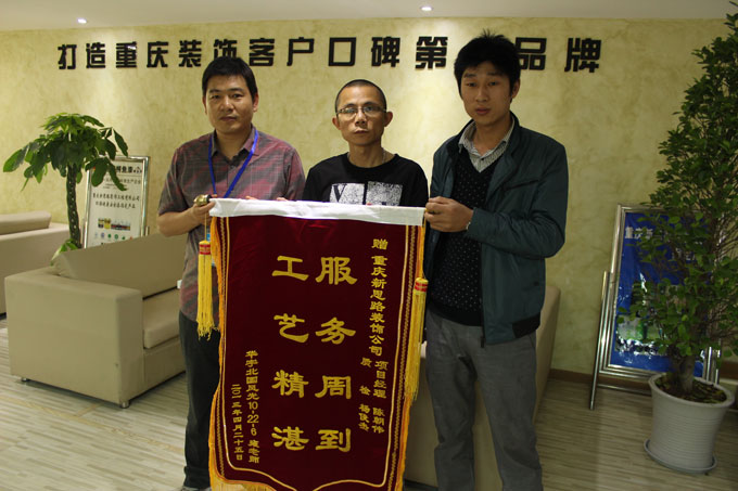 拿著這幅沉甸甸的錦旗,大家臉上都露出了欣慰的笑容,這不僅是對(duì)新思路裝飾“放心裝修、品質(zhì)裝修”服務(wù)的高度認(rèn)可,更是推動(dòng)我們向更高的目標(biāo)邁進(jìn)的強(qiáng)大動(dòng)力。我們一定會(huì)再接再厲,以打造重慶裝飾客戶口碑第一品牌為目標(biāo),服務(wù)好每一位業(yè)主,把每一位業(yè)主的家當(dāng)做自己的家來(lái)設(shè)計(jì)和裝修,用信譽(yù)、質(zhì)量以及貼心的服務(wù)打造更多的精品工程,放心工程,來(lái)回報(bào)我們的客戶。