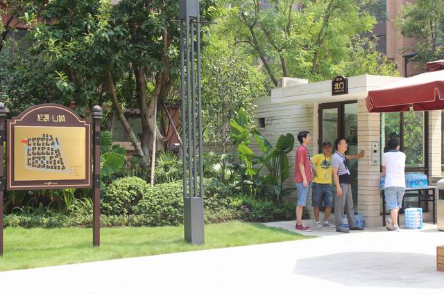 大家在小區大門口等候龍湖U城保安放行