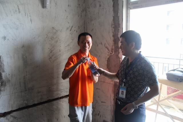 公司領導的關懷及送清涼活動,送到了員工的心坎上,暖在了員工的心田里。“公司領導冒著高溫給我們送來清涼解暑的礦泉水,就是對我們最真摯的關心啊!”,“感謝公司對我們的關懷和慰問,我們再苦再累,心也是甜的,精神更好了,干勁也更足了!”……工人師傅們用最樸實真摯的話語表達著對公司的感謝之情。而正好碰到公司送水的一些業主,也對公司領導冒著高溫給一線工人送水的行為給予了高度贊揚。金源御府8棟27-3的李老師就表揚說:“公司領導頂著烈日,親自給一線工人送水,新思路裝飾這點做的很好很到位,衷心祝愿新思路裝飾的明天更加美好”。而麓山別苑20棟2單元1—2的陳老師也稱贊道:“這么熱的天,新思路的領導們能到工地慰問工人,說明新思路裝飾是一家非常有管理,極具人性化的企業,相信新思路今后的發展會越來越好,道路會越走越寬!”