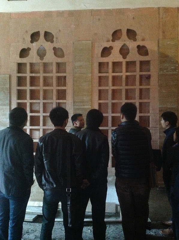 譚經(jīng)理正在講解木作工藝細(xì)節(jié)