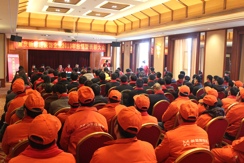 2014年1月20日下午,新思路裝飾“2013年度工作總結(jié)暨表彰大會(huì)”在麗華酒店9樓會(huì)議廳勝利召開。公司總部各部門、分公司各部門、施工一線員工代表近200人參加了會(huì)議。