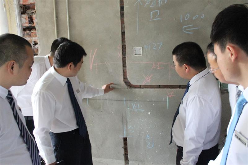 9月份是傳統的裝修旺季,也是公司保品質、促業績的關鍵時期,為保障工程質量,加強工地管理工作,9月11日,由張總親自帶隊,以全體管理層干部組成的巡查小組,冒雨對金輝城·花樣派、保利江上明珠、魯能領秀城、龍湖·拉特芳斯等多個工地進行了突擊檢查。