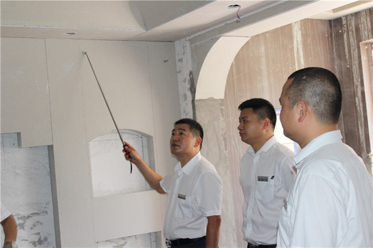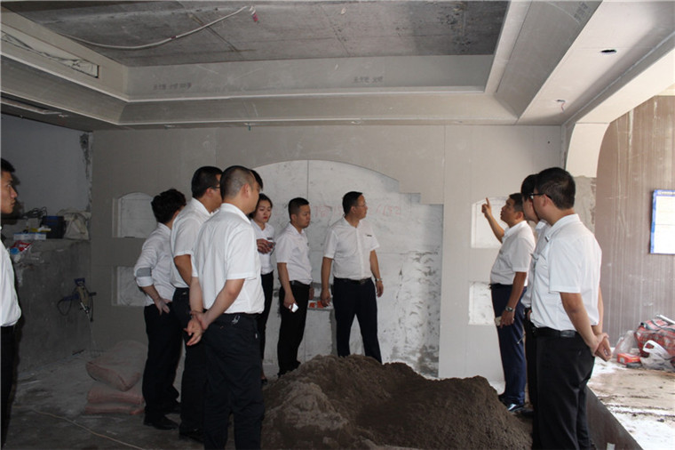 7月質量檢查月,新思路裝飾展開了下半年的第一次工地大巡查,由公司副總經理張強,工程部經理文斌帶隊,以工程質檢、項目經理、客服人員等組成的巡查小組,對金輝城·春上南濱、和記黃埔·和黃御峰、金科·中央御園、力帆·紅星國際、融創·凡爾賽、華宇上院、協信公館等多個工地進行了突擊檢查。