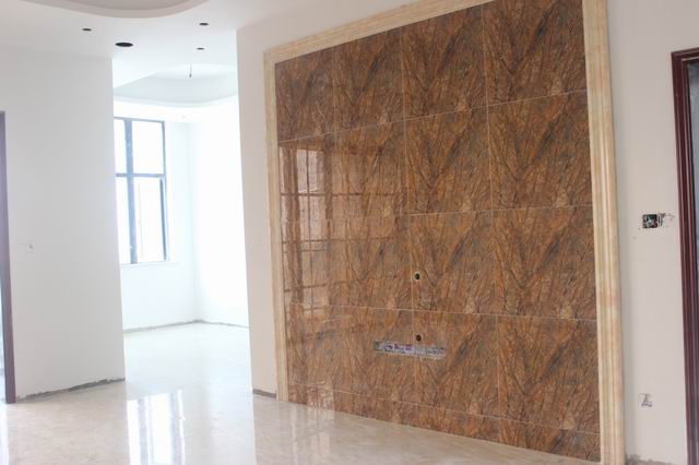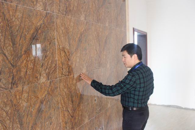 張總在仔細檢查墻面貼磚工藝細節