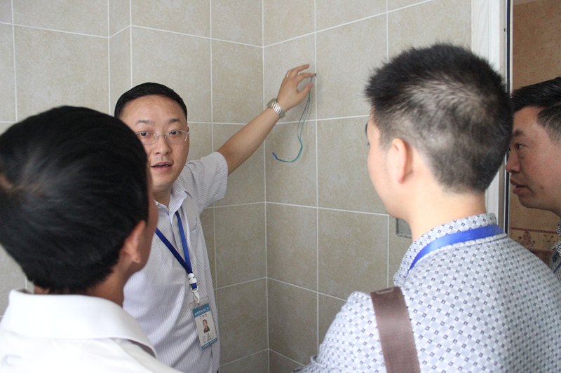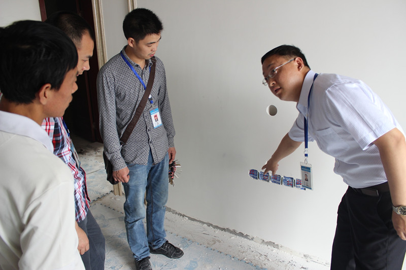 此次巡查嚴格遵循公司檢查制度和流程,檢查項目包括工程進度、安全防護、工程形象、工地衛生、成品保護、工藝標準等近百余項國家標準。大如是否私自變動工程,是否按公司規定使用主材和輔材;細微如每一個線頭的安全保護,每一塊瓷磚之間的縫隙寬窄,均按公司標準嚴格檢查?,F場發現,現場指導,現場整改,將工程質量問題控制在發生階段。巡查小組事無巨細的檢查、對施工質量的嚴苛態度,讓在場的業主與施工工人都深刻體會到了新思路對于工程質量近乎偏執的高要求。文經理在檢查的同時,也現場對新進的項目經理進行了指導和教學,不斷強調公司工程施工上的一些標準和要點,并把自己的工程管理經驗分享給他們。