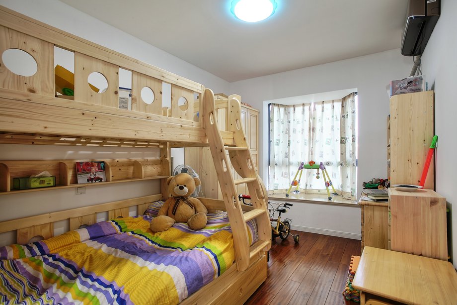 子女房與主臥最大的區(qū)別就在于設(shè)計上要保持相當程度的靈活性。子女房只要在區(qū)域上為他們做一個大體的界定,分出大致的休息區(qū)、閱讀區(qū)及衣物儲藏區(qū)就足夠了。在室內(nèi)色彩上吸引孩子是設(shè)計子女房的要點。兒童房間容易弄臟,裝飾時應(yīng)采用可以清洗及更換的材料,最適合裝飾兒童房間的材料是防水漆和塑料板,而高級壁紙及薄木板等不宜使用。